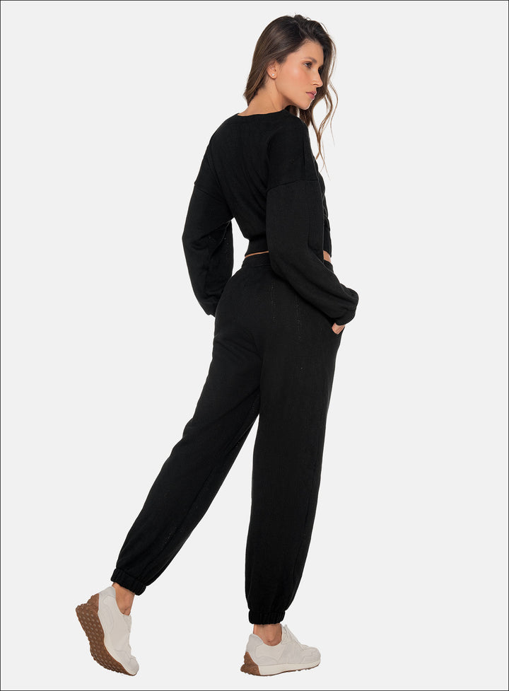 WOVEN PANTS WITH ELASTIC WAISTBAND AND HEM. SIDE BOX POCKETS.